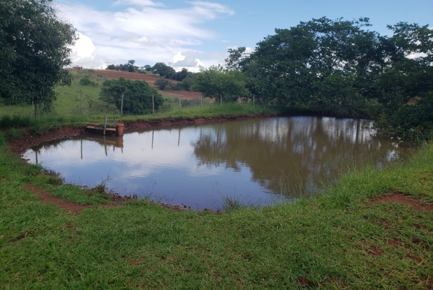 Rico em água, vista linda para o horizonte, represa e riacho.