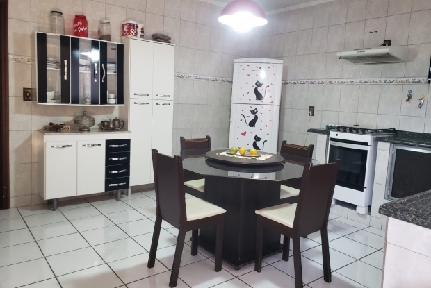 Composta por 03 dormitórios sendo 01suíte, sala, cozinha ampla, wc social, garagem para 02 carros.